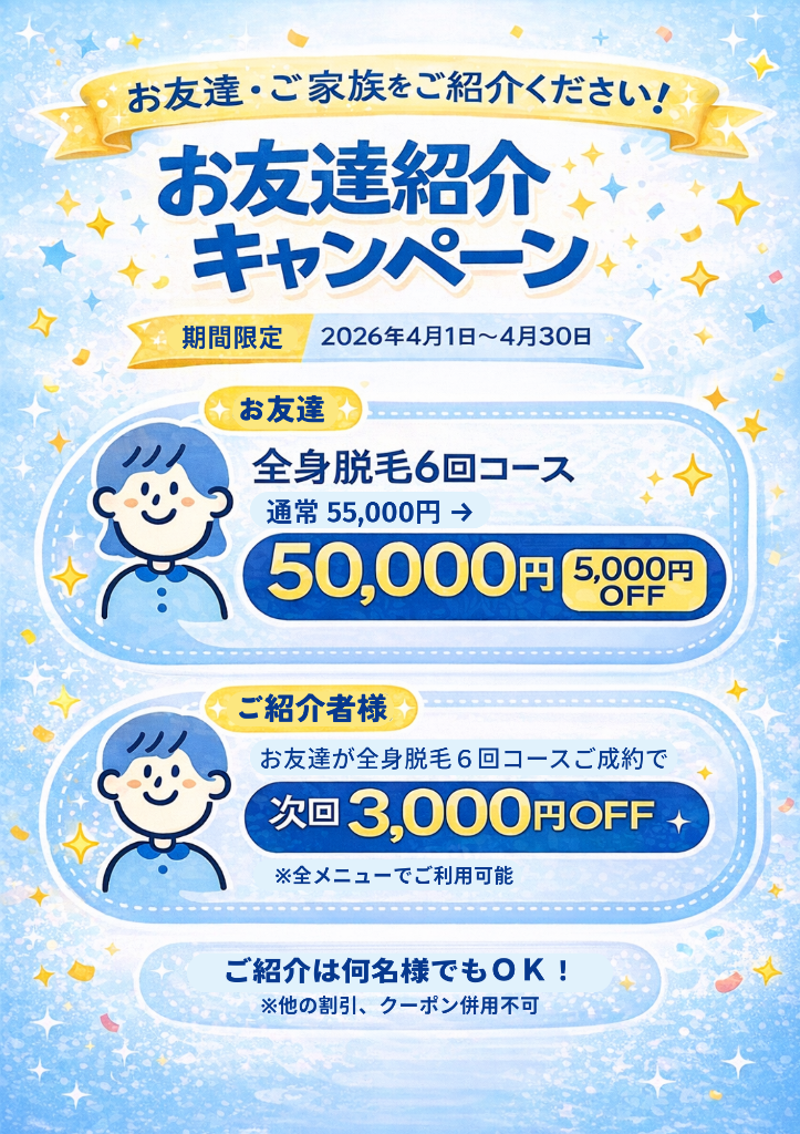 全身脱毛(全顔・VIO込み)6回¥55,000キャンペーンで